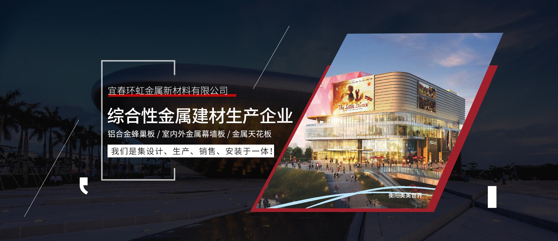 宜春環(huán)虹金屬新材料有限公司總部位于廣東省佛山市創(chuàng)立于2011年。公司建設(shè)有高標準的現(xiàn)代化工業(yè)生產(chǎn)廠房及完備的生活配套設(shè)施,是一家生產(chǎn)鋁單板、鋁合金蜂窩板、室內(nèi)外金屬幕墻板、金屬天花板等新型建筑裝飾材料的現(xiàn)代化企業(yè)。從產(chǎn)品設(shè)計到生產(chǎn)檢驗、施工安裝及服務(wù)都嚴格按照ISO09001和ISO14001 2015質(zhì)量與環(huán)境保證體系實行嚴格的控制和管理,并著力為客戶提供優(yōu)良的個性化服務(wù)和相關(guān)解決方案。公司擁有一批高素質(zhì)、高水平的...